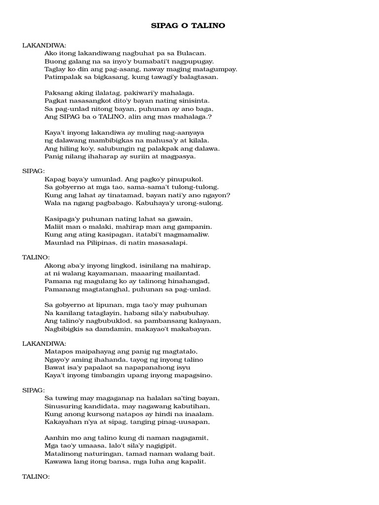 SIPAG O TALINO LAKANDIWA. Talino from the story Tula by princessroselle319 Princess Roselle with 52148 reads. Muli ang Balagtasan ay.